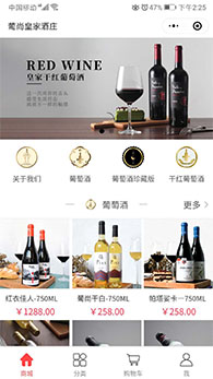 紹興葡尚皇家酒莊小程序是紹興魔方網絡科技有限公司2019年度開發(fā)的微信小程序,小程序頁面設計時尚簡潔,是愛品味紅酒和收藏紅酒購買小程序,開發(fā)了首頁商城、分類、購物車、我的中心等等模塊。